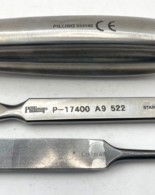 LOT OF 3 Alexander Periosteotome: Pilling 343145, Pilling P17400 & Codman
