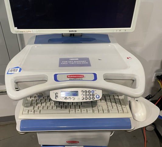 Rubbermaid M38 Medical Cart w/ Monitor, Camera, PC Acc., Height Adj. Works