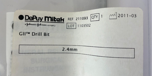 Depuy Mitek 211093 GII Drill Bit 2.4mm